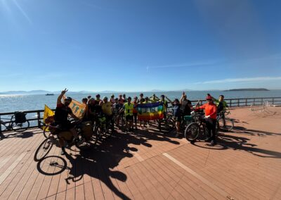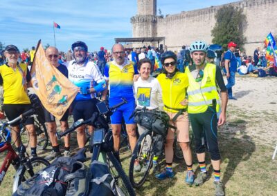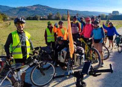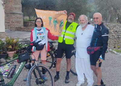 Quest’anno, per la prima volta, ho partecipato con Elisa, Alessio, Giovanni, Emma, Antonio e Giacomo con due famiglie e quattro bambini alla marcia della Pace di Perugia-Assisi, in rappresentanza ufficiale della nostra associazione MDF. Alcuni di noi ci siamo unitə il 9 ottobre alla Paciclica, una cordata di cicloviaggiatori organizzata dalla Fiab Toscana per raggiungere Perugia in una modalità più sostenibile e piacevole. La prima tappa è stata Pontedera Firenze dove abbiamo dormito a Casa Caciolle (bella realtà sociale conosciuta all’ultimo Bike Tour di giugno). Venerdì 10 ottobre siamo partitə per Arezzo, dopo cento chilometri abbiamo raggiunto il rifugio Pieve la Sassaia di Rigutino, un eremo medievale, dove siamo stati accolti calorosamente dal frate laico Giovanni. La bella posizione panoramica, il racconto dell’antica storia del convento e l’incredibile vita del monaco laico che ci ospitava, hanno creato una piacevole e serena atmosfera impregnata di spiritualità.