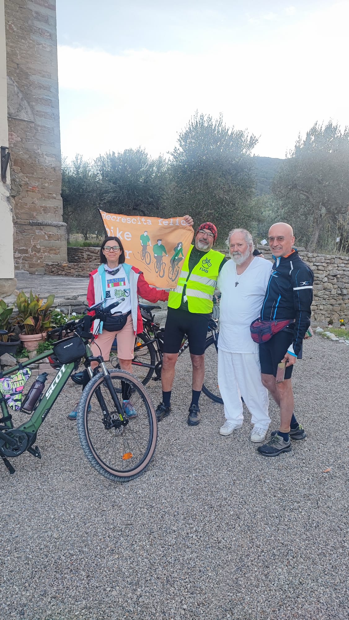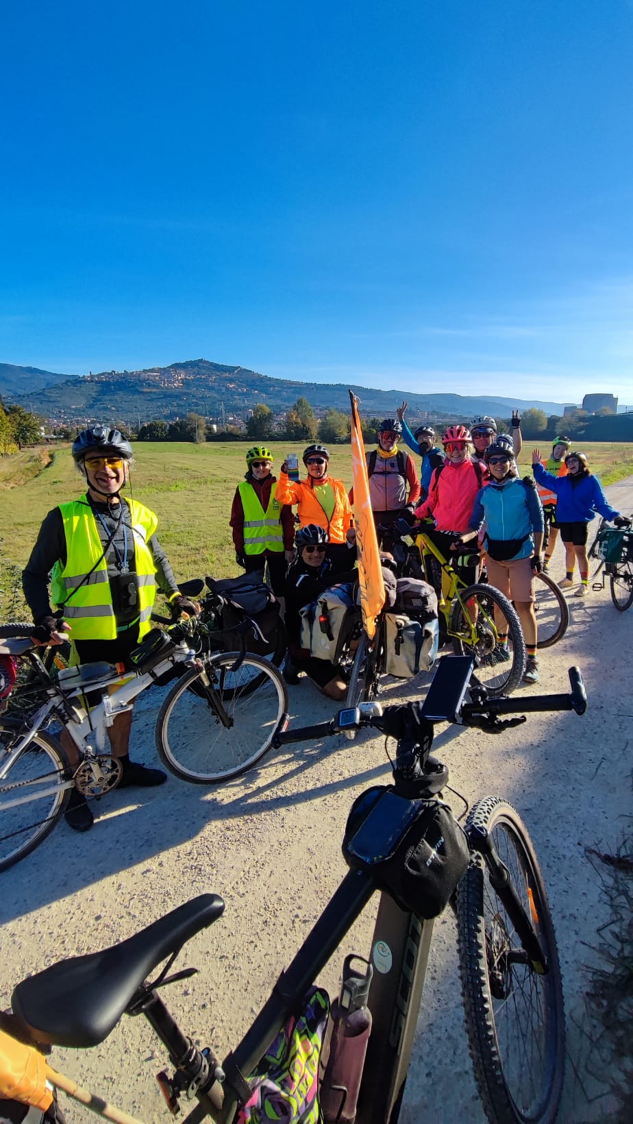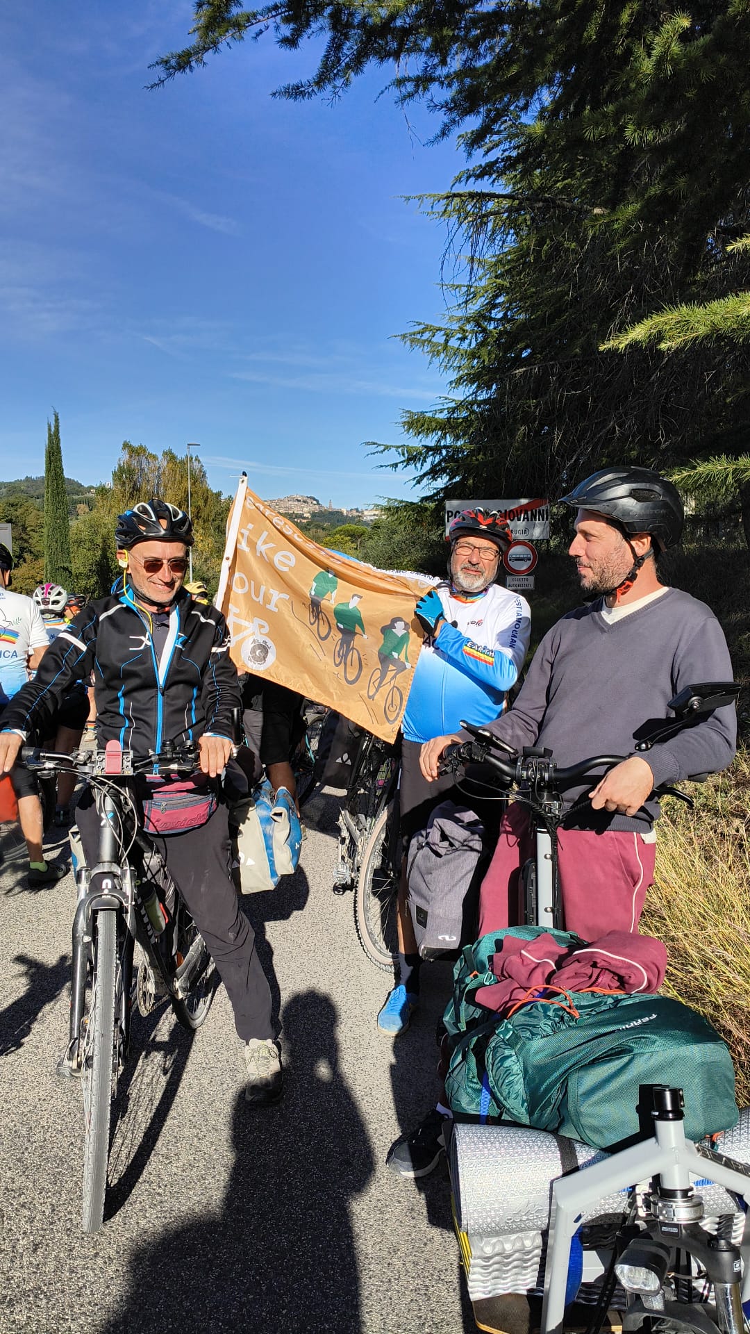 Quest’anno, per la prima volta, ho partecipato con Elisa, Alessio, Giovanni, Emma, Antonio e Giacomo con due famiglie e quattro bambini alla marcia della Pace di Perugia-Assisi, in rappresentanza ufficiale della nostra associazione MDF. Alcuni di noi ci siamo unitə il 9 ottobre alla Paciclica, una cordata di cicloviaggiatori organizzata dalla Fiab Toscana per raggiungere Perugia in una modalità più sostenibile e piacevole. La prima tappa è stata Pontedera Firenze dove abbiamo dormito a Casa Caciolle (bella realtà sociale conosciuta all’ultimo Bike Tour di giugno). Venerdì 10 ottobre siamo partitə per Arezzo, dopo cento chilometri abbiamo raggiunto il rifugio Pieve la Sassaia di Rigutino, un eremo medievale, dove siamo stati accolti calorosamente dal frate laico Giovanni. La bella posizione panoramica, il racconto dell’antica storia del convento e l’incredibile vita del monaco laico che ci ospitava, hanno creato una piacevole e serena atmosfera impregnata di spiritualità.